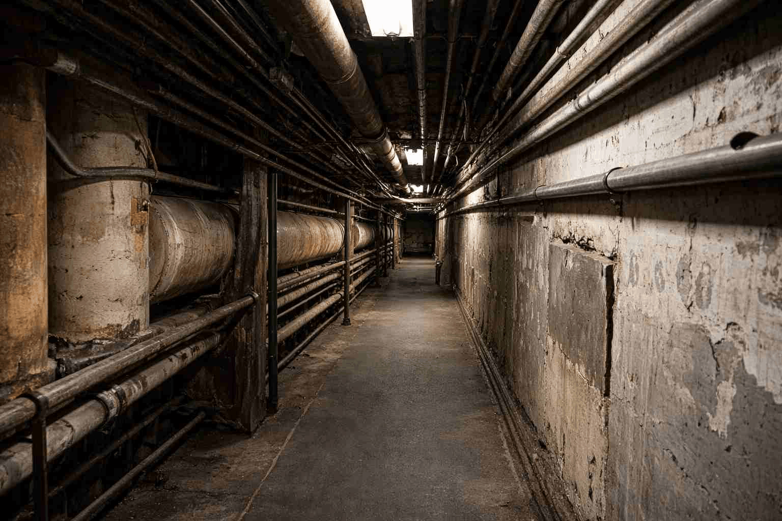 Вышел в итоге в другой коридор с трубами, они не кончаются, хотя я шел уже около трех часов. Впрочем, ничего удивительного.